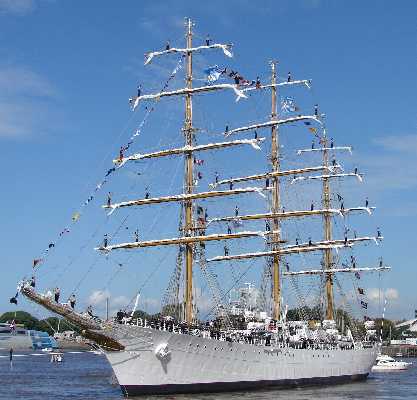 www.conozcabuenosaires.com.arLa partida de la Fragata LibertadEl sábado 7 de abril, a las 15 horas, zarpó la Fragata Libertad, emprendiendo su 38º viaje de instrucción y regresará el 8 de diciembre.El buque escuela recientemente reparado, inició este nuevo viaje con una innovación: "lleva mujeres como parte de su tripulación". En la soleada tarde, se apreciaba una gran euforia de todos los que partían para completar su período de instrucción y mientras se llevaban a cabo los últimos detalles para zarpar, miraban desde la embarcación a familiares, amigos y gran cantidad de gente que se acercó a despedirlos con gran emoción. La Fragata emprendió el viaje a la hora fijada y realizará un recorrido que durará ocho meses, durante los cuales visitará los siguientes puertos: San Salvador de Bahía en Brasil, La Guaira en Venezuela, San Juan en Puerto Rico, Nueva York (EE.UU) y Halifax en Canadá. Arribará posteriormente a Irlanda donde visitarán la casa donde nació el Almirante Brown, rindiéndole homenaje en el 150 aniversario de su muerte y luego llegará a Ámsterdam Holanda, Cádiz en España, Toulón en Francia, Génova en Italia, Oslo en Noruega, Copenhague en Dinamarca y Amberes en Bélgica. Se estima que para el 17 de agosto estarán en Boulogne Sur Mer, donde falleció el Gral San Martín, a quien también rendirán su homenaje, visitando el hogar donde vivió y falleció. Luego continuará el itinerario llegando a las costas estadounidenses (Boston y Norfolk), Cartagena en Colombia, El Callao en Perú, Valparaíso en Chile, Ushuaia en Argentina, Montevideo en Uruguay y finalmente llegarán a La Plata el 8 de diciembre. El comandante de la Fragata ARA Libertad, capitán de navío Pablo Vignolles, dijo a los medios que "el viaje tiene la misión de completar la formación profesional de los guardiamarinas que están egresando en su último año de la escuela naval militar y además del aspecto central, educativo, como misión de la fragata está la de representar al país y contribuir en el marco de las relaciones internacionales entre la República Argentina y el mundo". Mientras la bandera flameaba en lo alto de la Fragata, los marinos tomaban orgullosos sus puestos para partir. Algunos felices pero con lágrimas en sus ojos por la emoción y la melancolía de dejar a sus seres queridos que los despidieron con carteles, largos abrazos y besos. Se levaron anclas, sonó la sirena y la banda despidió a la embarcación que se fue internando en el río. Buen Viaje y hasta la vuelta !!!